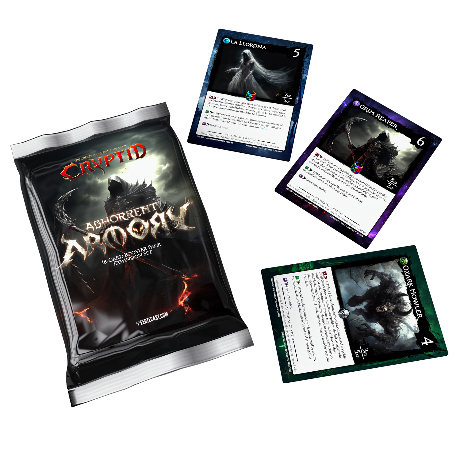 Unlock ALL current CRYPTID cards in Season 1 with this discounted complete set! Includes the Abhorrent Armory Booster Pack AND MOTHMAN VS WENDIGO Duel Decks Box Set! (BOOSTER PACK IS NOT RANDOM)